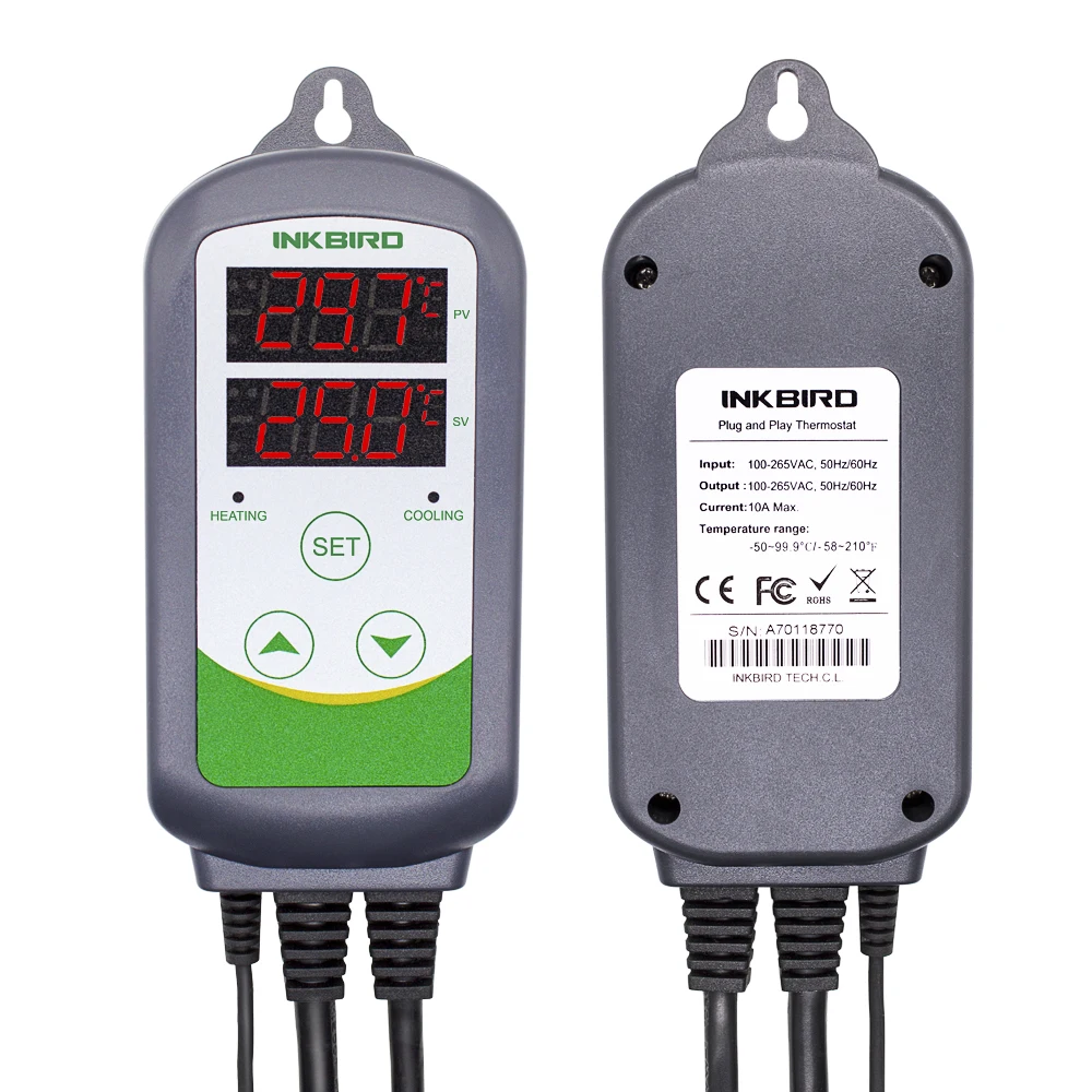 INKBIRD-플러그앤플레이 온도 조절기, 카보이, 발효기, 온실, 테라리움, 가정용 양조용 이중 릴레이 난방 및 냉각 온도 조절기