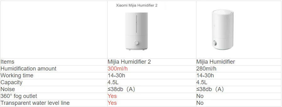샤오미-미지아 가습기 2 가지 주요 기능