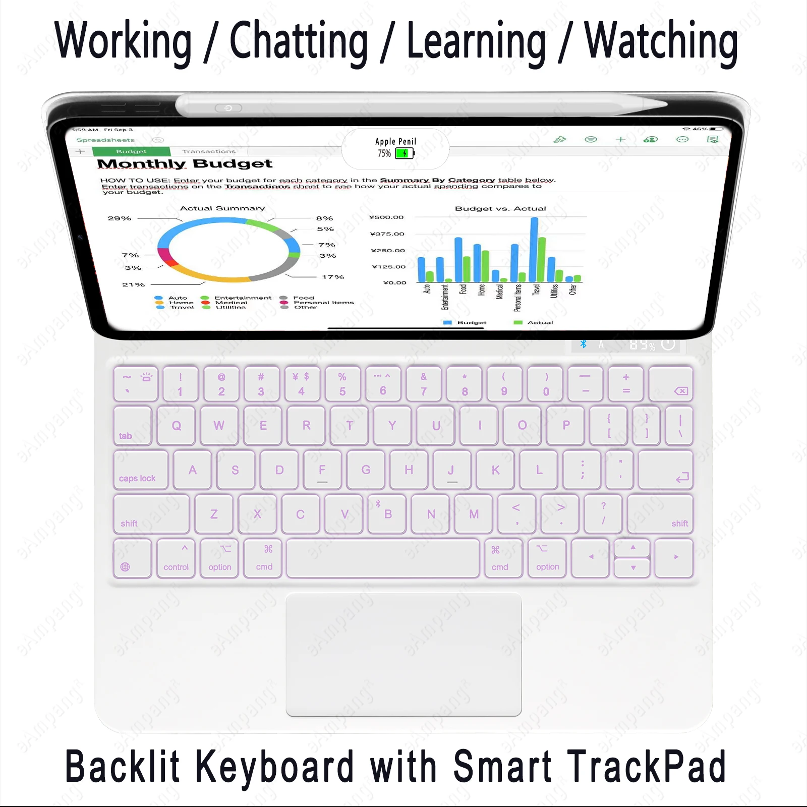아이패드 10 10 프로 11 12.9 2022 2021 2020 에어 4 5 10.9 용 매직 키보드, 케이스 키보드 히브리어 스페인어 러시아어 한국어 아제트 아랍어