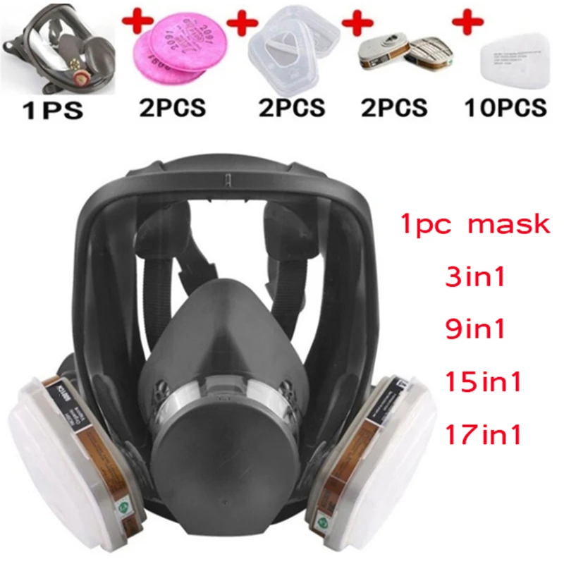 보호 3/15/17 In 1 안전 호흡기 가스 마스크 6800 와 동일 가스 마스크 페인팅 스프레이 풀 페이스 페이스 피스 호흡기