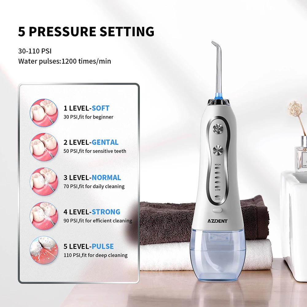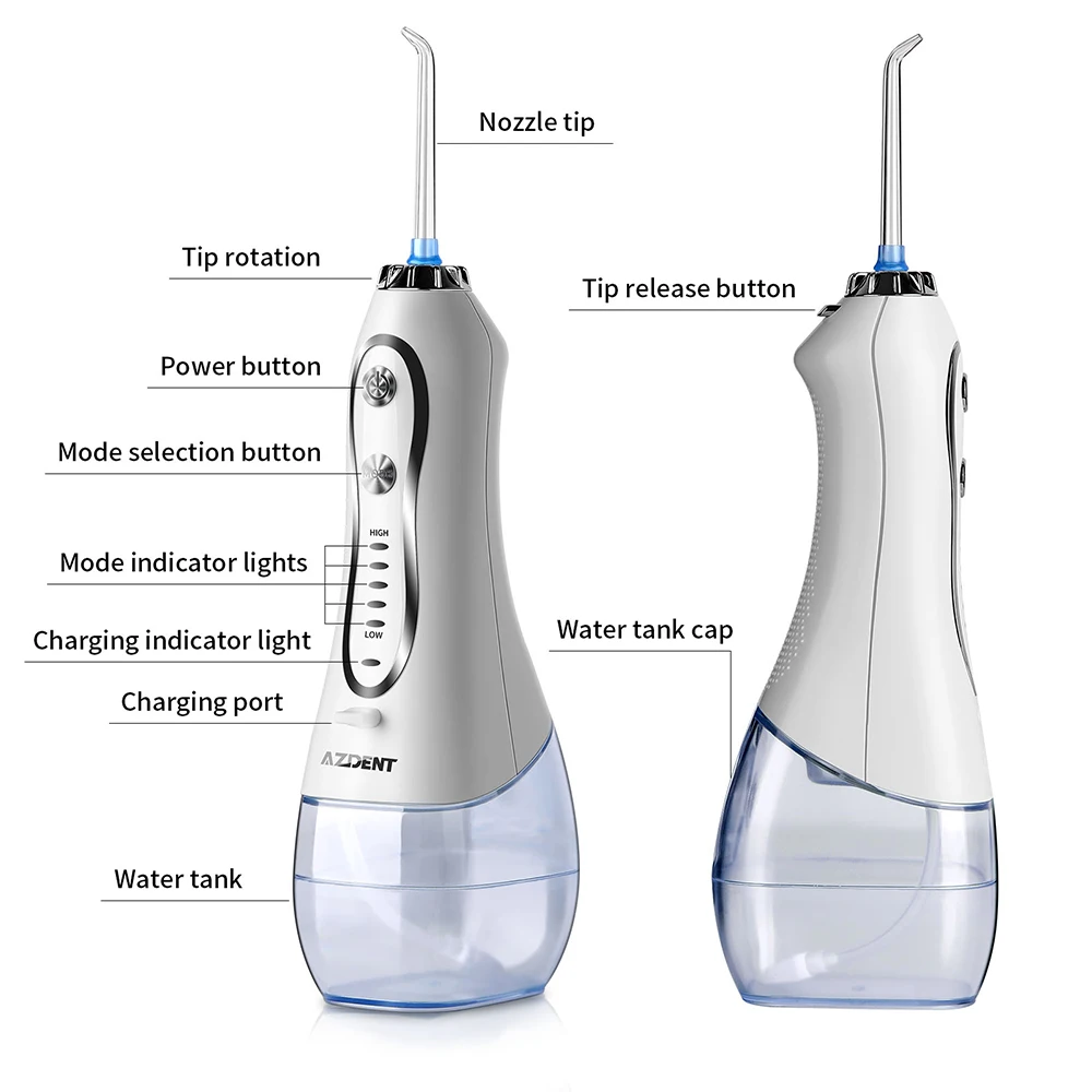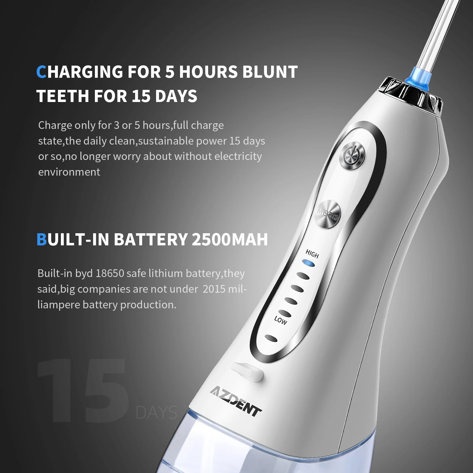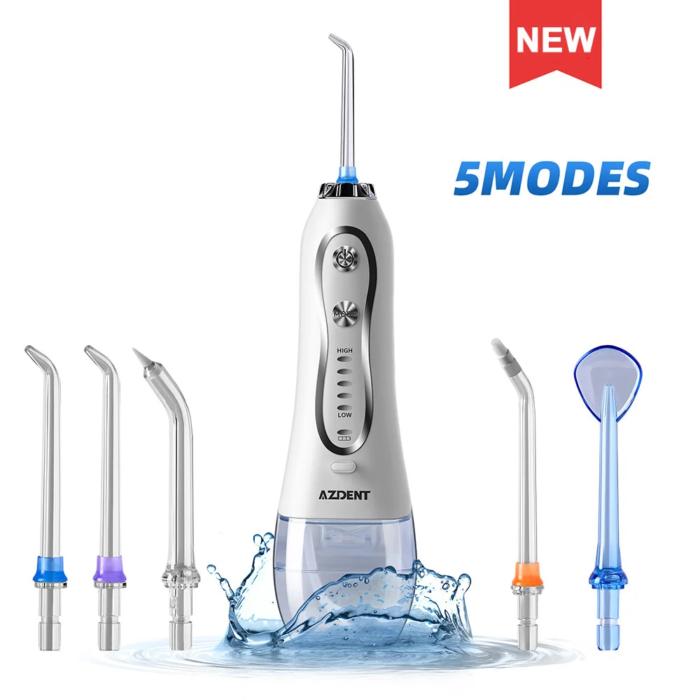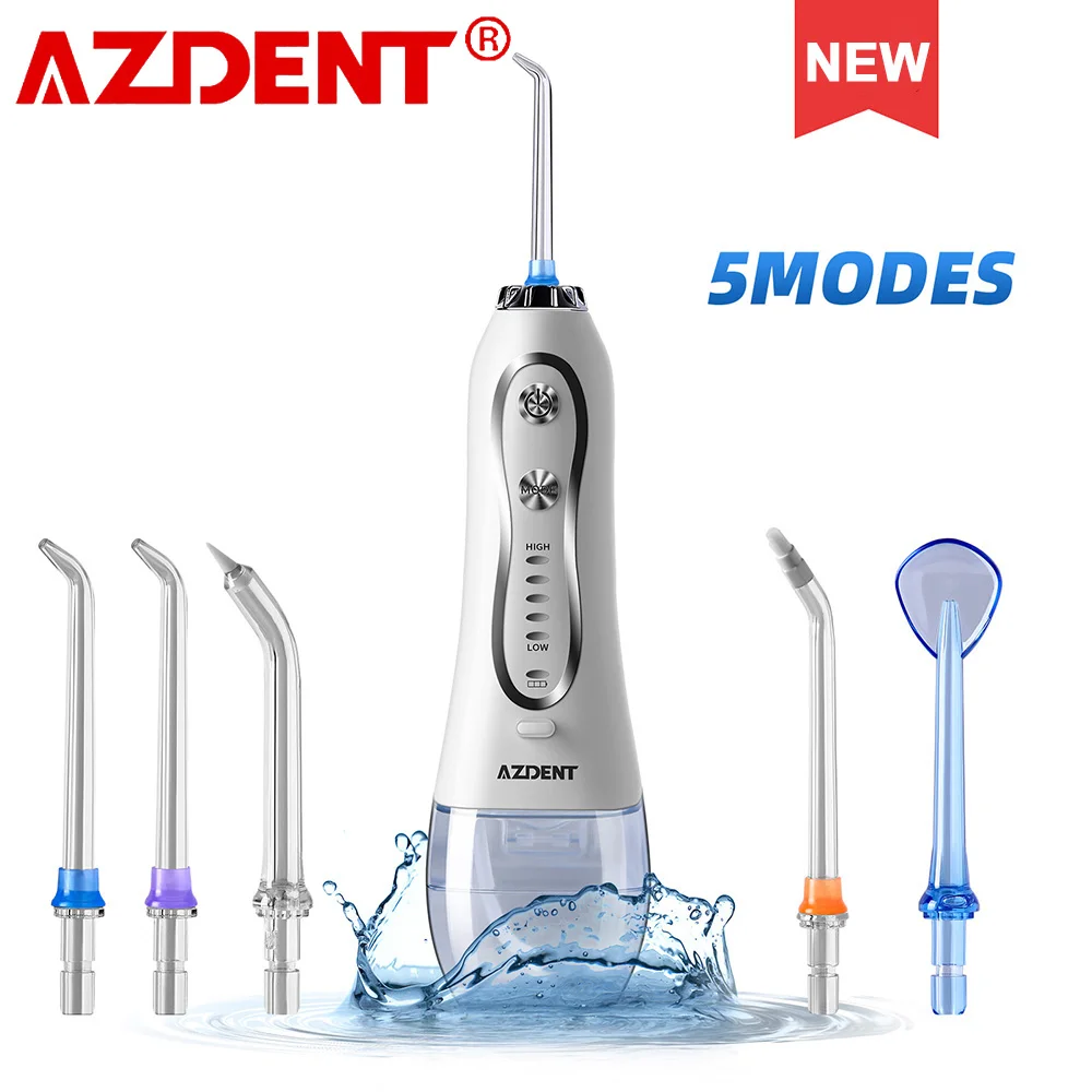 AZDENT 최신 HF-6 5 모델 전기 구강 Irrigator 여행 가방 무선 휴대용 치과 Flosser 5pcs 제트 노즐