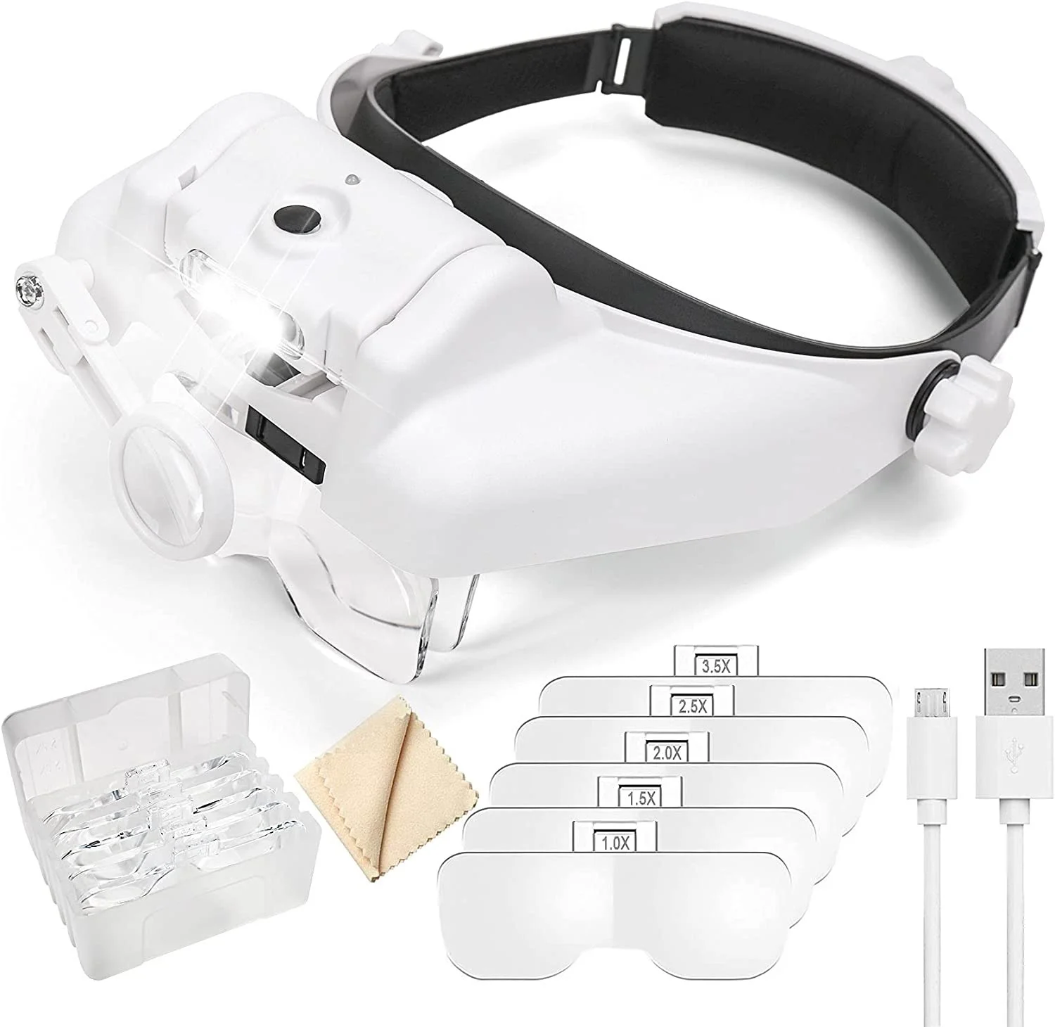 헤드 밴드 돋보기, 조명 충전식 수리 납땜 확대경, 교환 가능한 렌즈, 납땜용 세 번째 핸드 루페