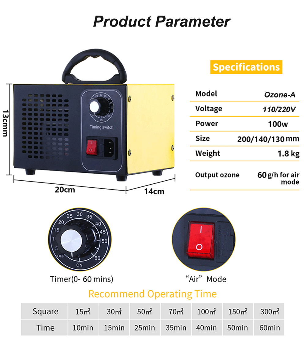 DADAWINDY 60 g/h 오존 발생기 60 g/h 공기 청정기 오존 발생기 살균 청정기 치료 포름 알데히드 냄새 제거, 오존 발생기 60 g/h