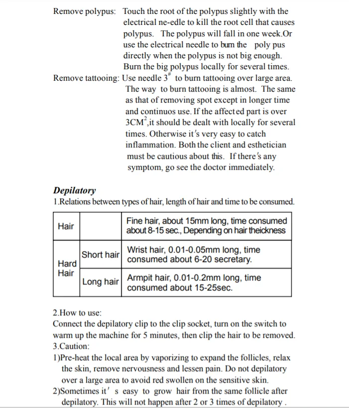 제모 클립을 클립 소켓에 연결하고 스위치를 켜서 기계를 5 분 동안 예열 한 다음 제거할 머리카락을 클립.