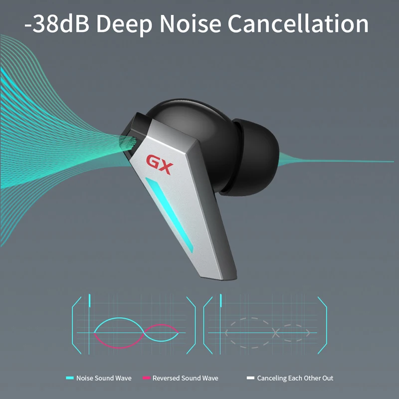 하이브리드 액티브 노이즈 캔슬링 (Active Noise Cancellation) 을 사용하면 4 개의 MIC가 귀 안팎의 소음을 감지하고 움직이는 코일 장치는 소음을 상쇄하기 위해 음파를-38dB 로 반전시킵니다.