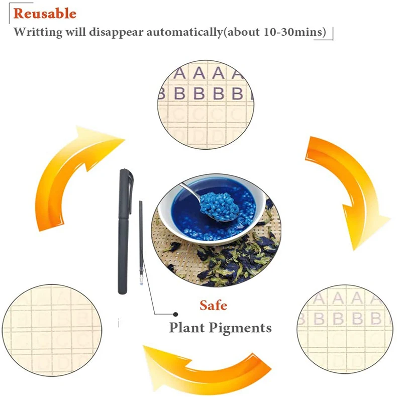 이 자동 페이딩 펜을 사용하면 10 분 후에 책의 텍스트가 자동으로 페이드 아웃됩니다. 즉, 어린이는 마술로 서예를 여러 번 연습하고 더 이상 실수하는 것에 대해 걱정할 필요가 없습니다.