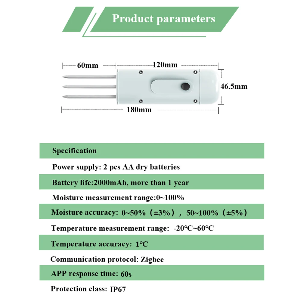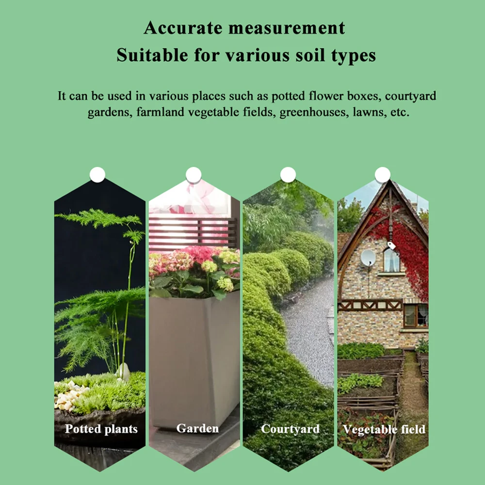 토양의 온도와 습도는 작물의 성장에 중요한 역할을합니다. 고온 및 저온은 토양의 미생물에 의한 비료의 유기물 분해에 영향을 미친다. 높은 수분은 토양 통기가 불량하고 수분은 작물 성장을 충족시키지 못합니다. 이 제품은 작물을 재배하고 성장 환경을 이해하는 훌륭한 도우미입니다. 2in1 설계, 이 무선 토양 모니터링 장비는 토양의 습도와 온도를 동시에 측정할 수 있습니다.