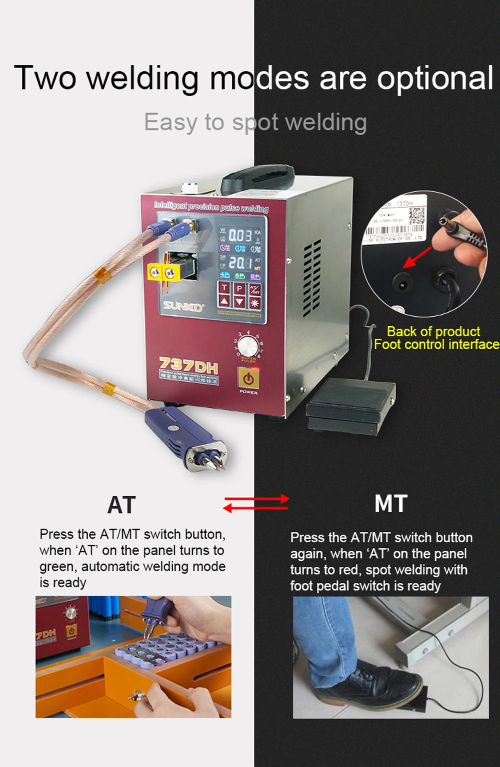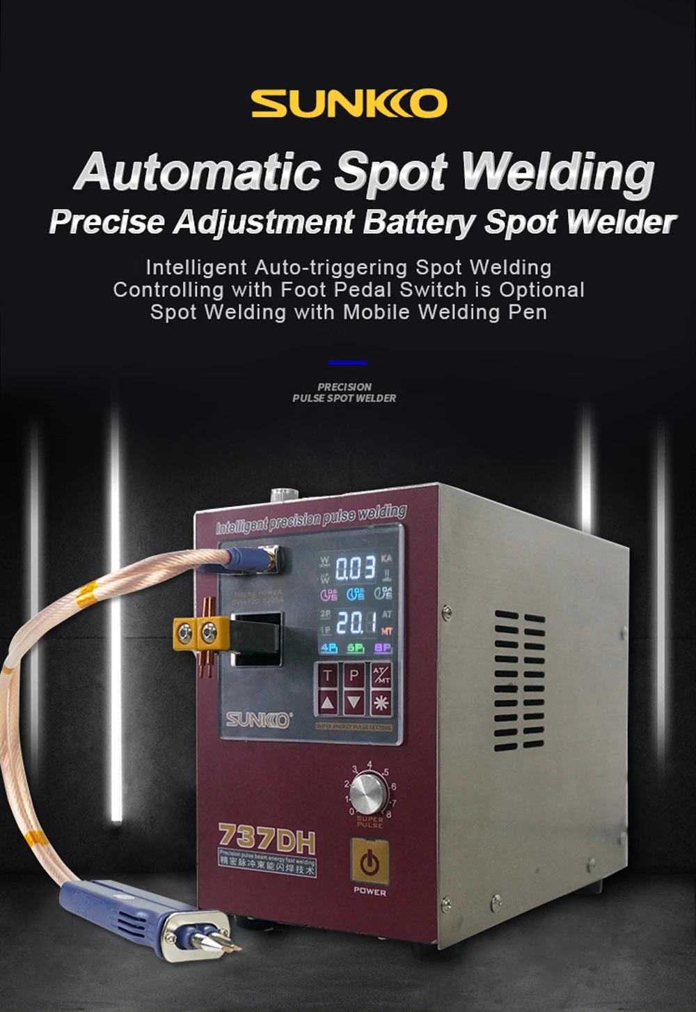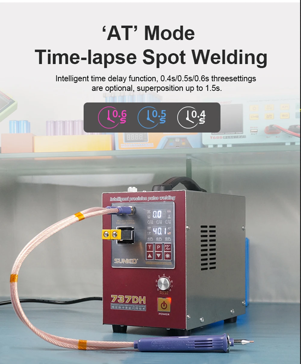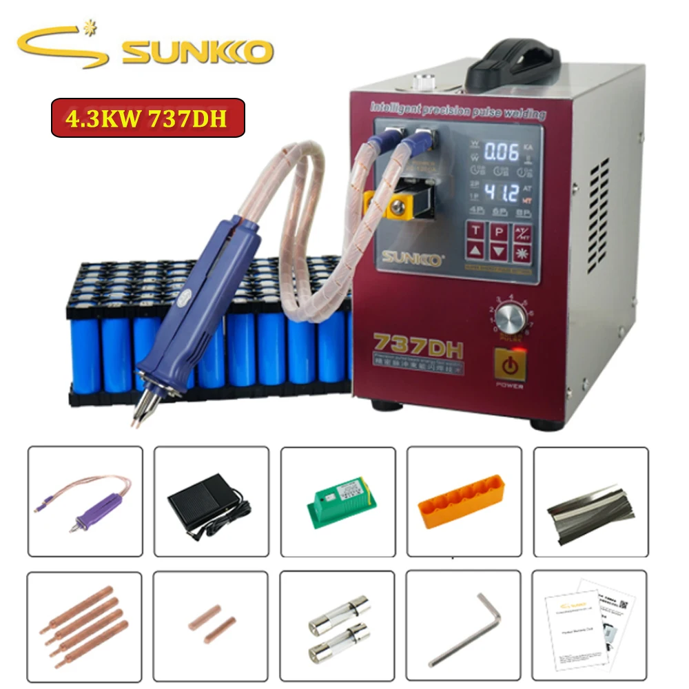 SUNKKO 18650 배터리 용접용 자동 펄스 스폿 용접기, 유도 지연 4.3KW 고출력, 737DH 스폿 용접기