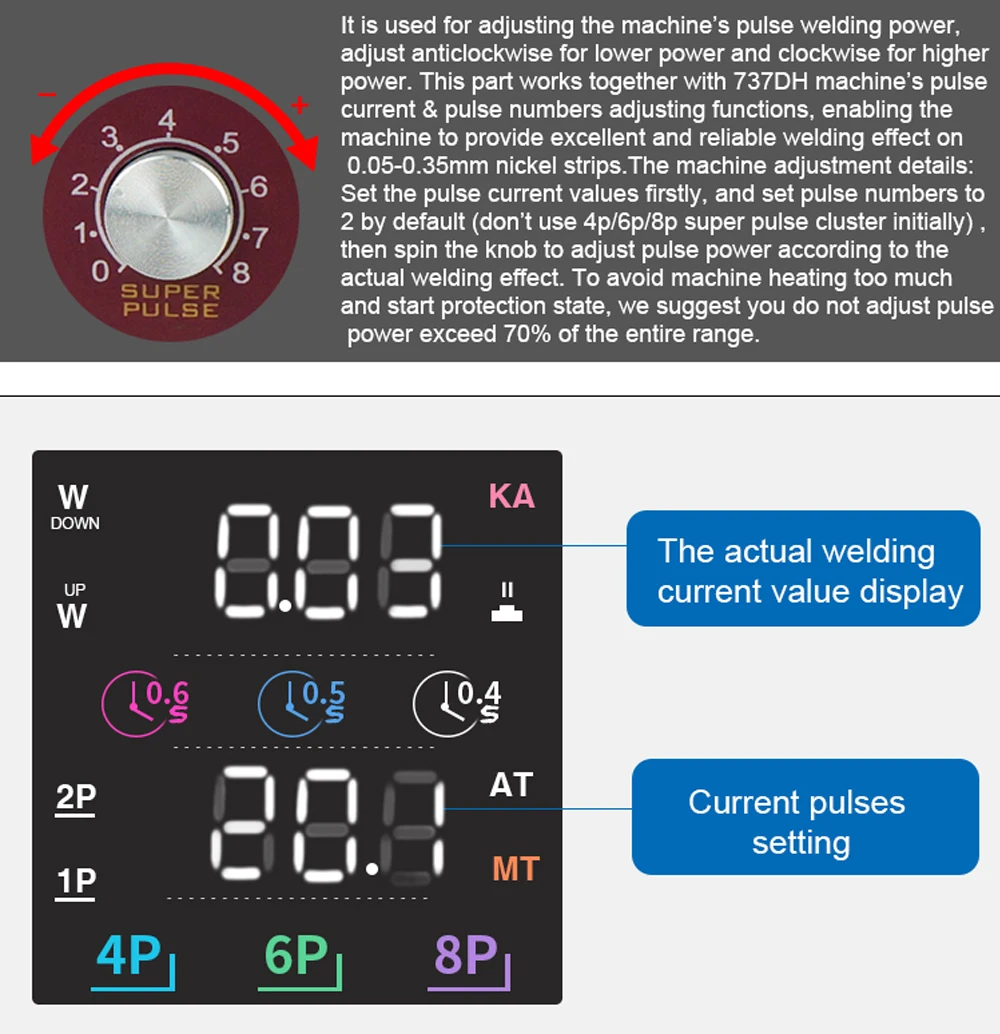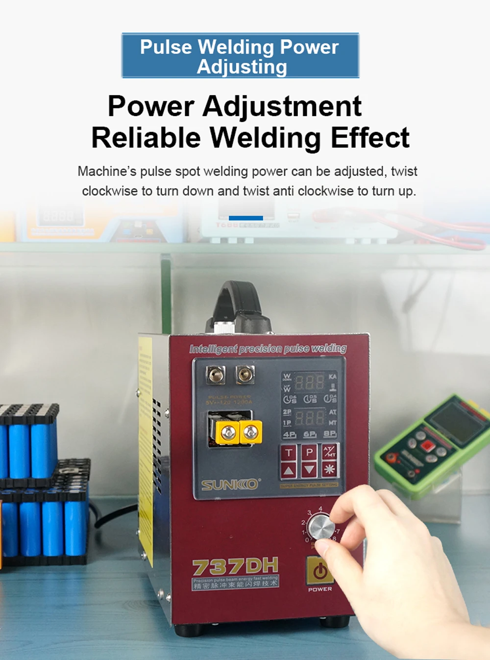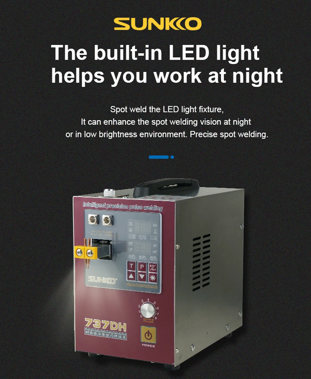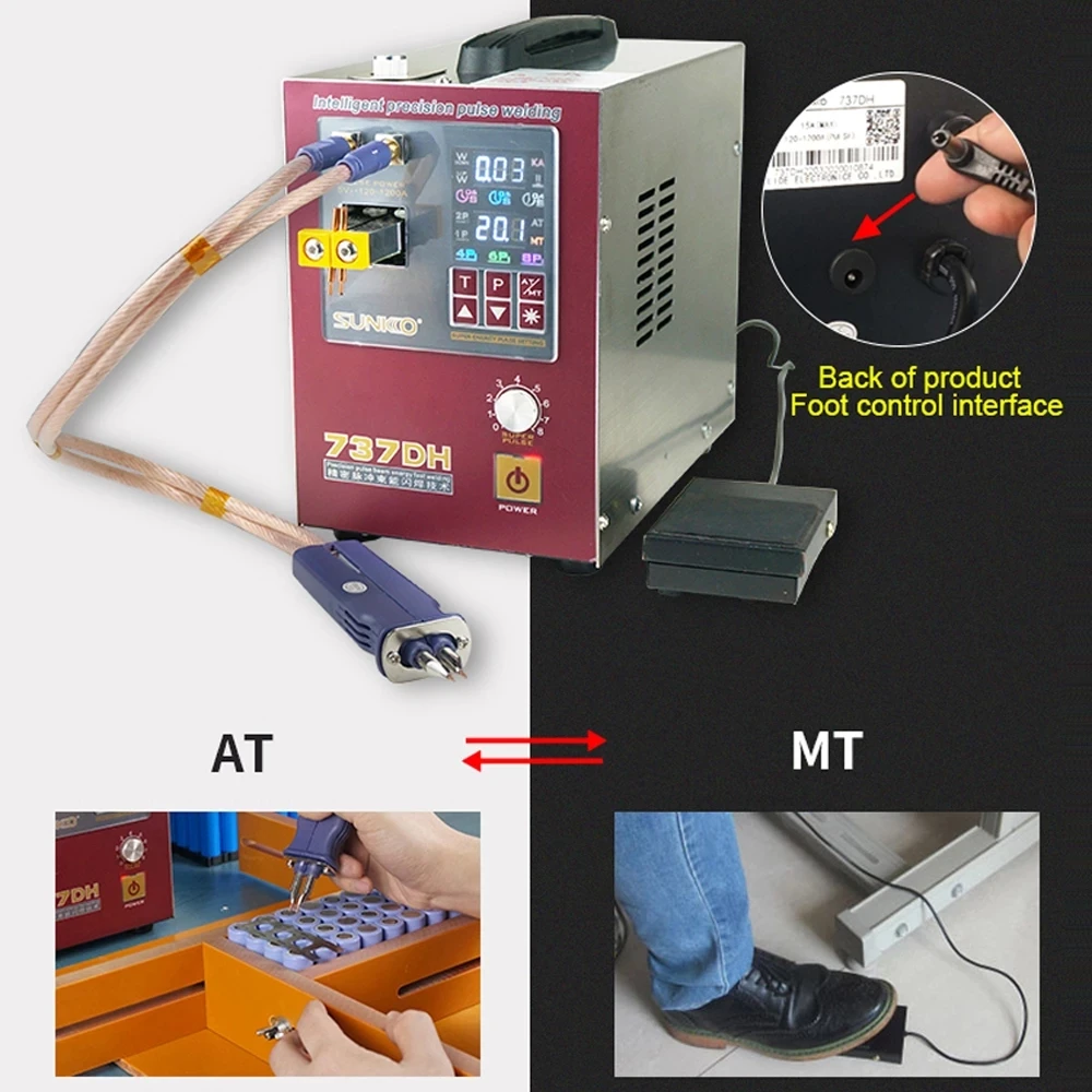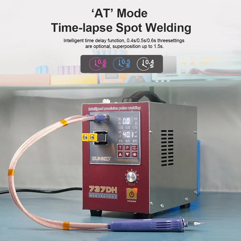 SUNKKO 18650 배터리 용접용 자동 펄스 스폿 용접기, 유도 지연 4.3KW 고출력, 737DH 스폿 용접기