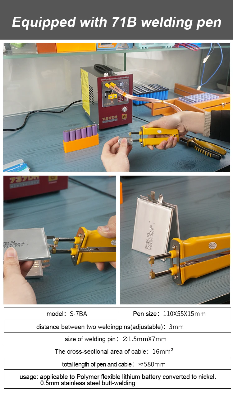 737DH 스폿 용접기 71B 스폿 용접 펜과 함께 사용할 수도 있지만 별도로 구매해야하며 매장에서 71B 스폿 용접 펜의 링크를 찾을 수 있습니다.