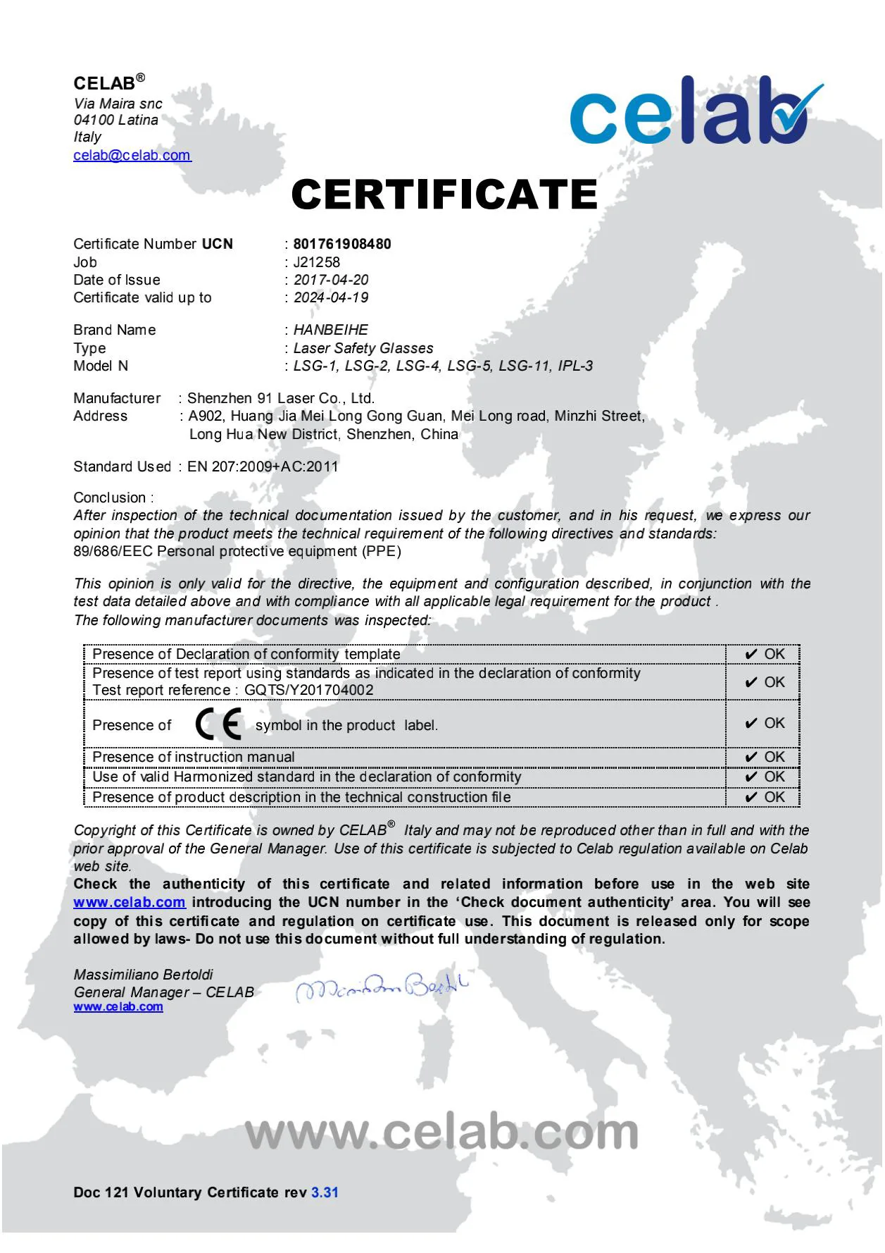 표준 충족 EN 207: 2017 ,(EU) 2016/425 PPE