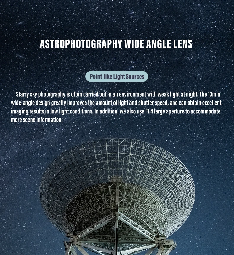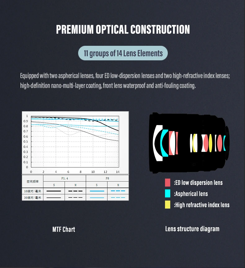또한 더 많은 장면 정보를 수용하기 위해 F1.4 큰 조리개를 사용합니다.