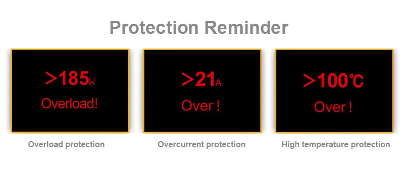내장 된 과전류, 과온도, 과전력 안전 보호 기능, 보호 인터페이스가 표시되는 경우 매개 변수 조정에주의하십시오. 전원을 켠 다음 방전하면 시작 및 방전에서 사전 설정 값을 천천히 부드럽게 조정하여 최대 전력까지 조정할 수 있습니다. 방전