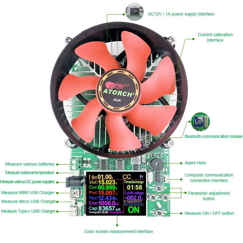 다운로드 및 설치하려면 응용 프로그램 저장소에서 E_test 를 검색 한 다음 Bluetooth APP 아이콘을 클릭하여 소프트웨어를 엽니 다. 소프트웨어 위의 Bluetooth 아이콘을 클릭하여 연결할 선택 DL24-BLE 입력하면 휴대 전화 원격 무선 원격 제어 설정 및 측정 기능을 얻을 수 있습니다. 방전 상태는 휴대 전화에서 언제든지 볼 수 있으며 다양한 데이터 정리가 표시되며 방전의 전압 및 전류 전력 곡선 등이 표시됩니다.