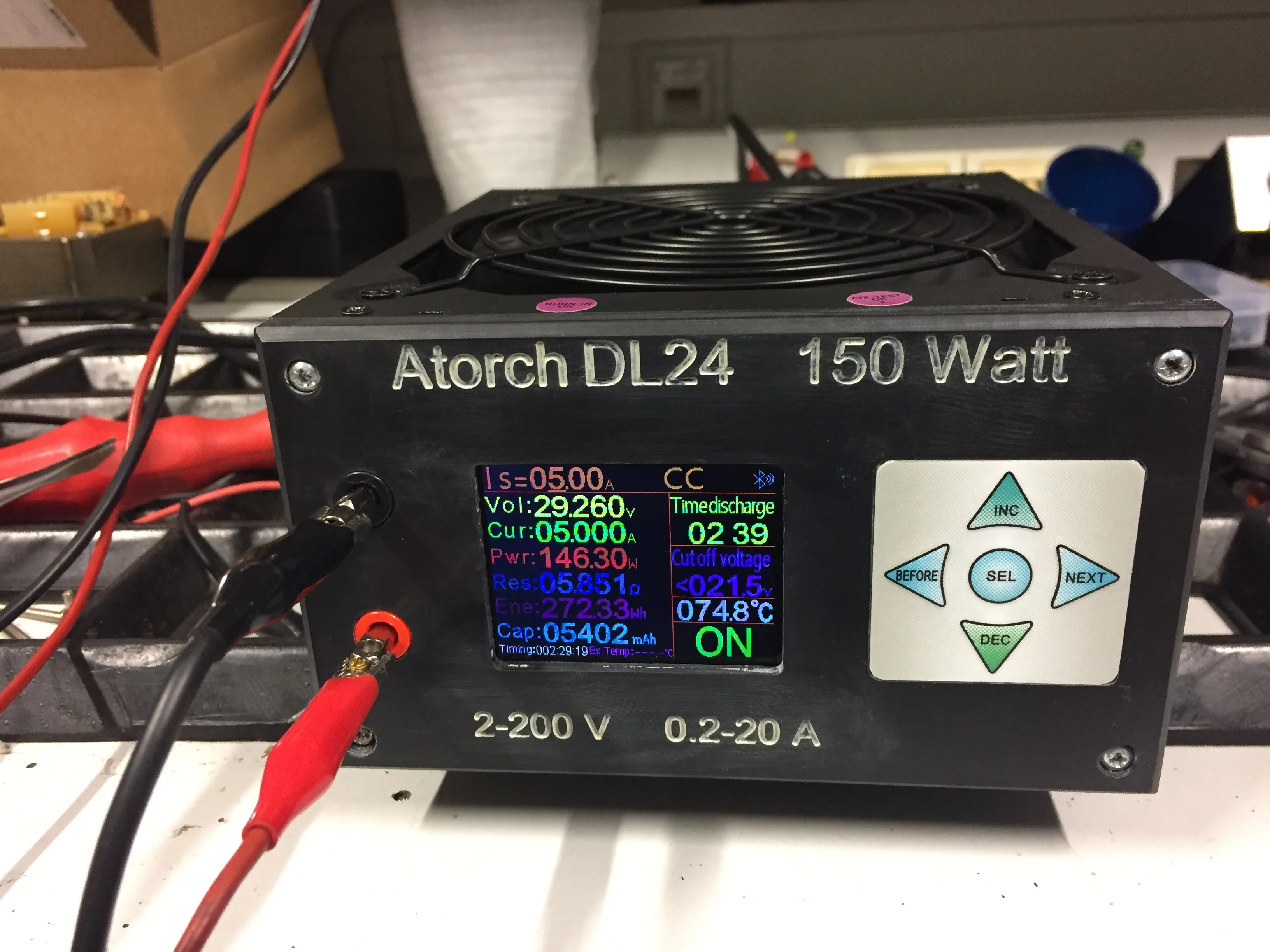 DL24 방전 전력: 전압 * 전류 <150 W