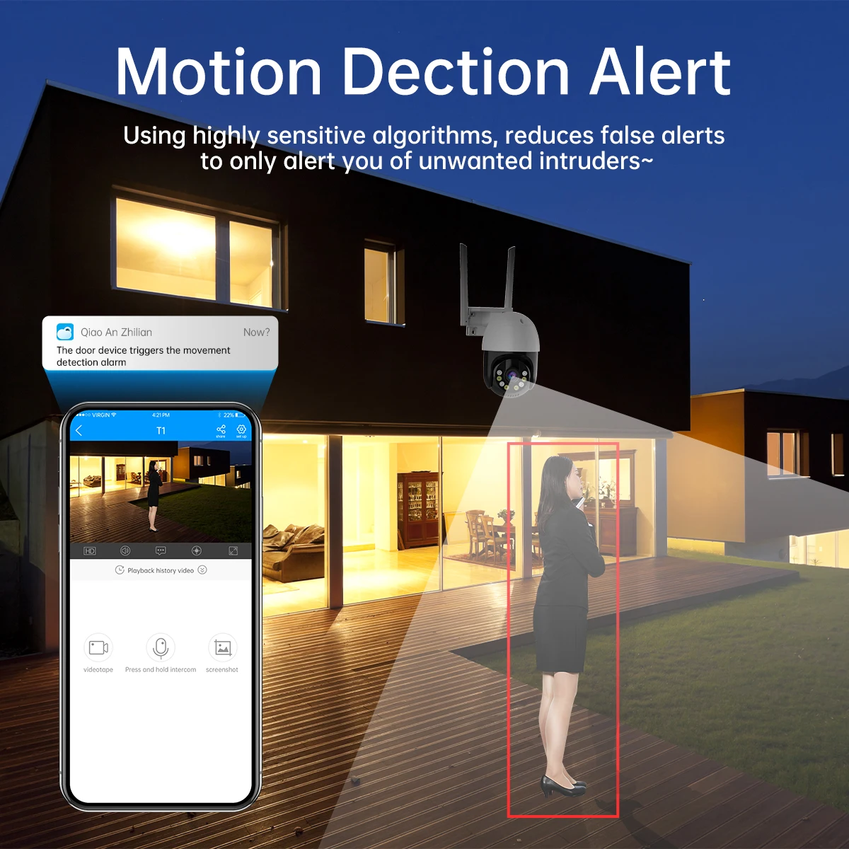 이 PTZ 카메라에는 마이크와 스피커가 내장되어 있습니다. 따라서 스마트 폰을 통해 언제든지 자녀와 원격으로 대화 할 수 있습니다.