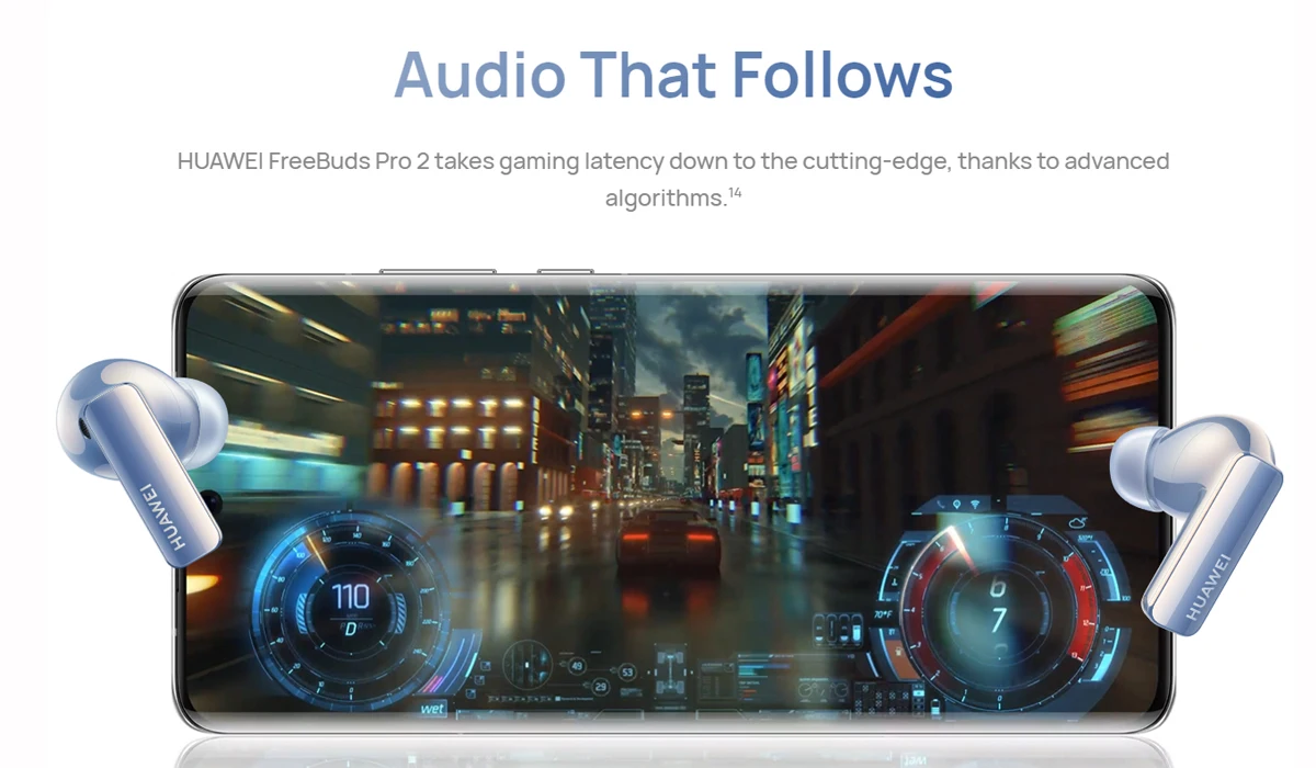 HUAWEI Freebuds Pro 2 는 고급 알고리즘 덕분에 게임 대기 시간을 최첨단으로 단축합니다.