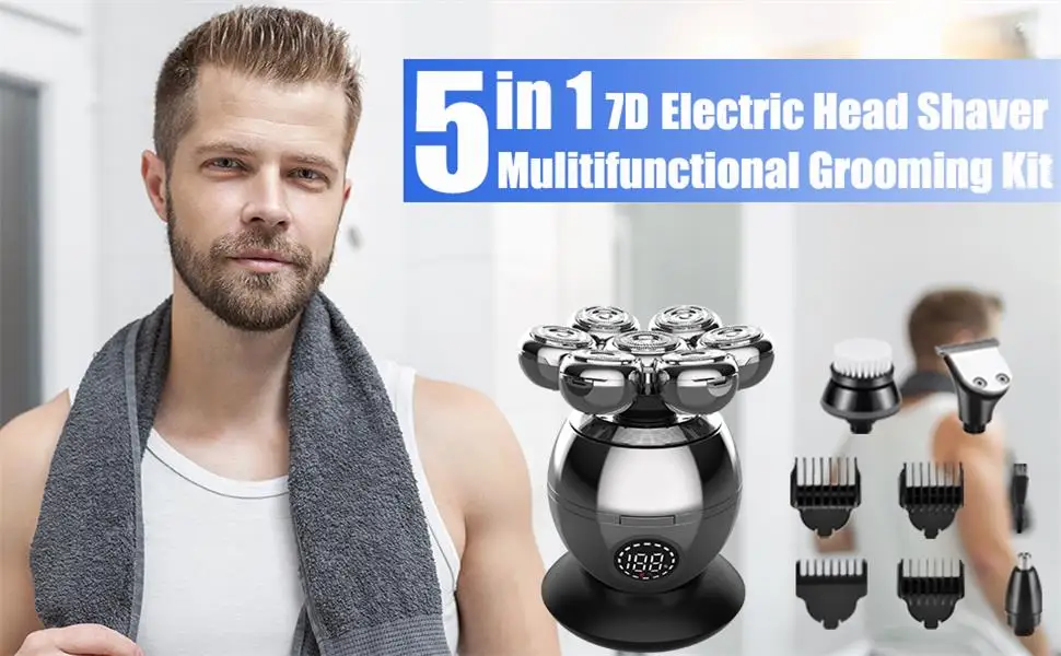 1. 대머리 남성용 5-in-1 전기 머리 면도기, 5 in 1 방수 전기 면도기 그루밍 키트
