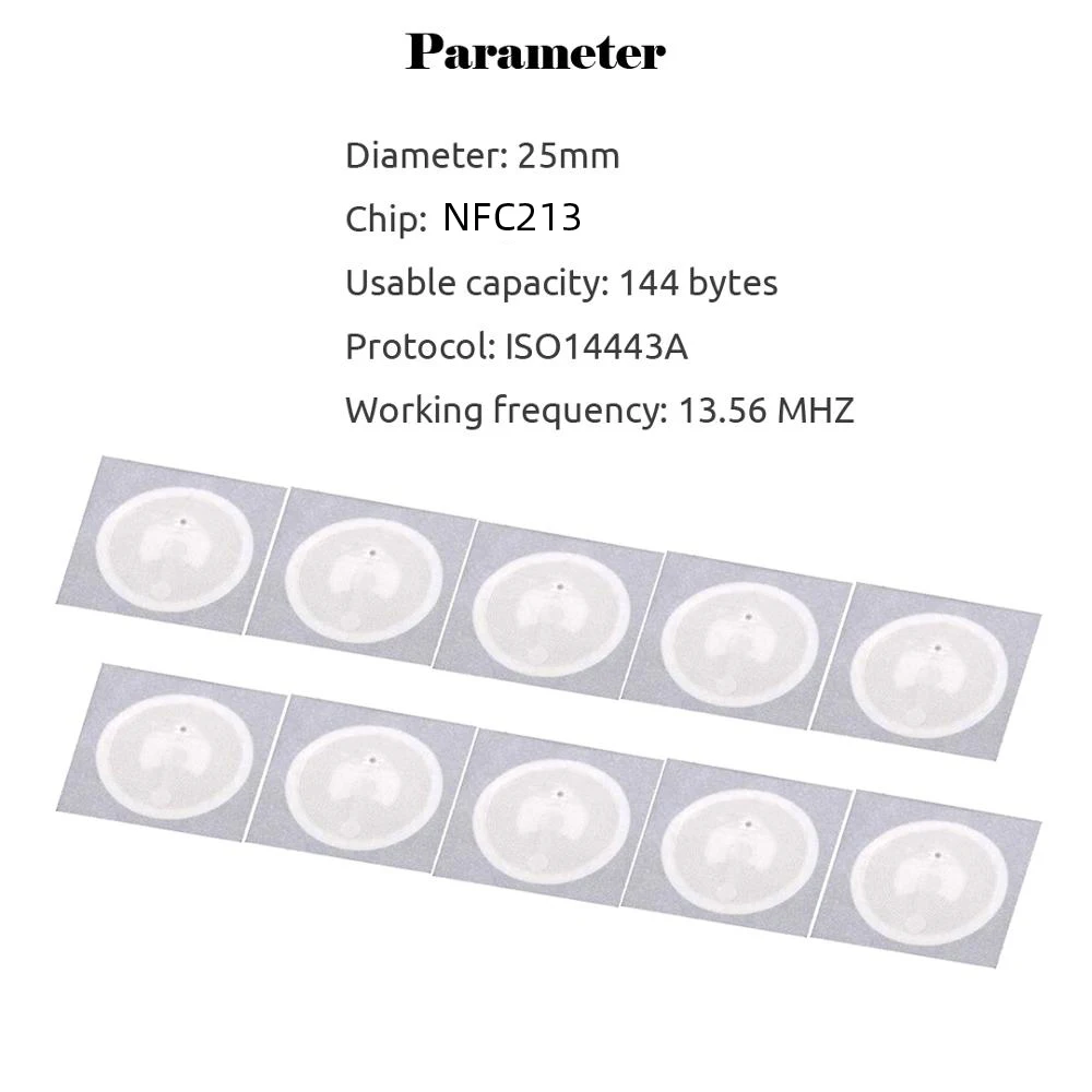 NFC 태그 NFC213 라벨 100 스티커 태그 배지 라벨 스티커 213 mHz 화웨이 공유 ios13 개인 자동화 단축키, 13.56 개/묶음
