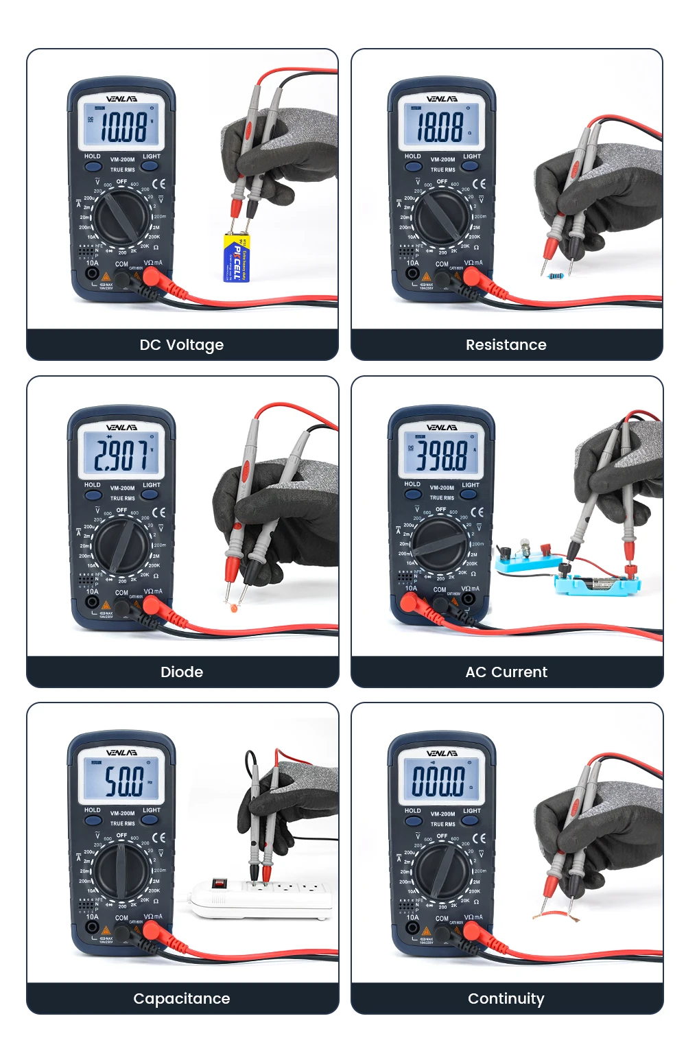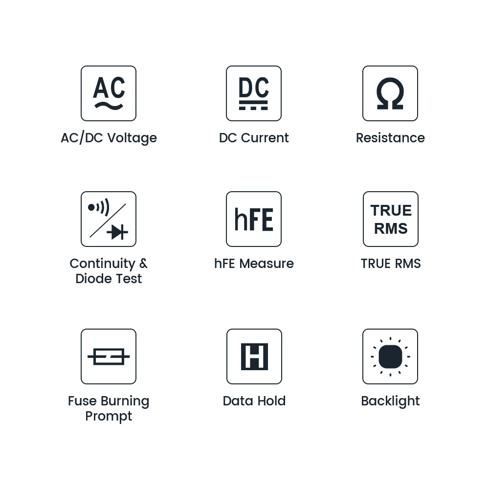 이 멀티 미터는 AC/DC 전압, DC 전류, 저항, 연속성, 다이오드 측정, hFE 측정을 테스트 할 수 있습니다!