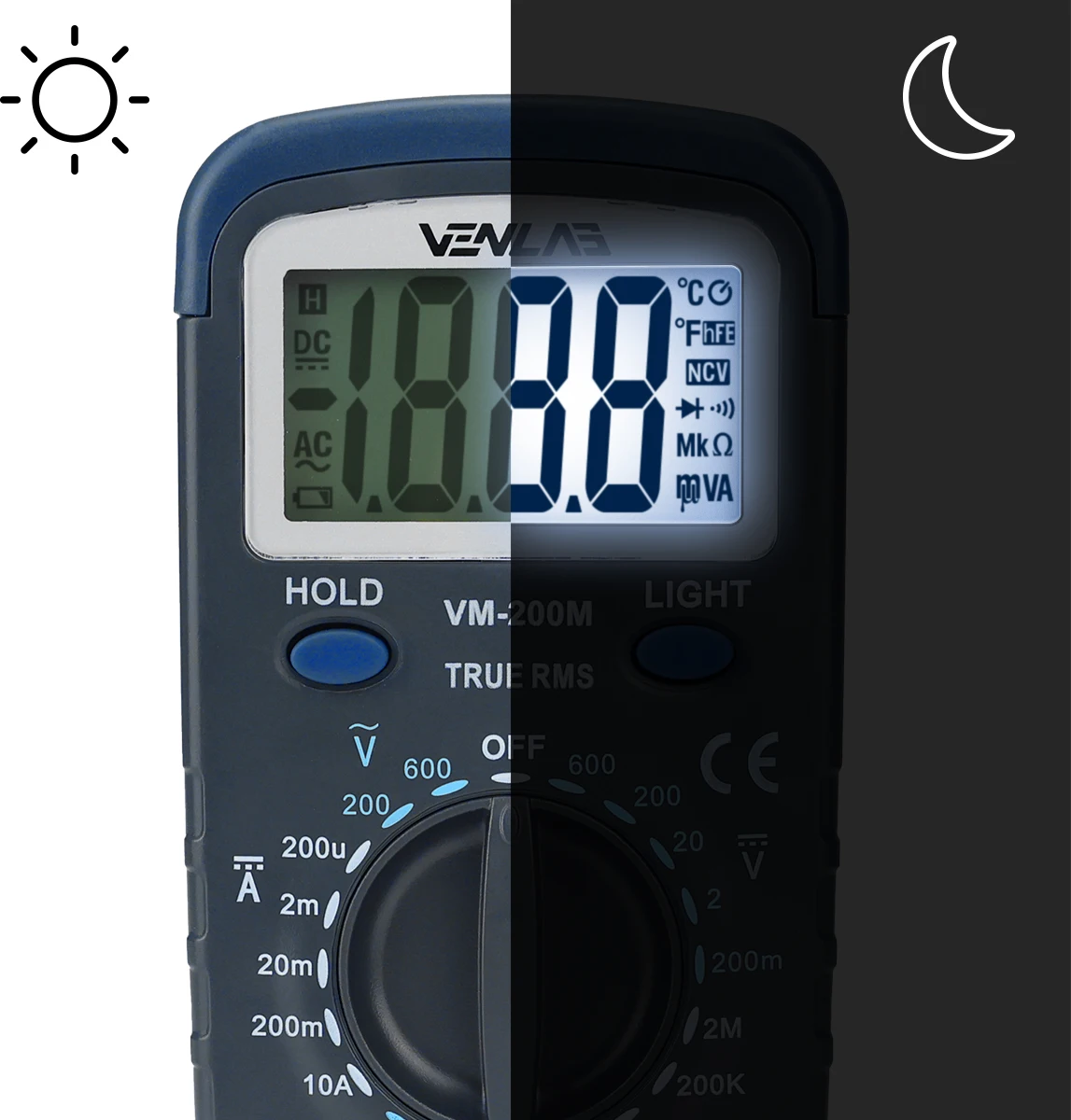 VM-200 화면 백라이트 기능이있어 어두운 환경에서도 작동합니다.