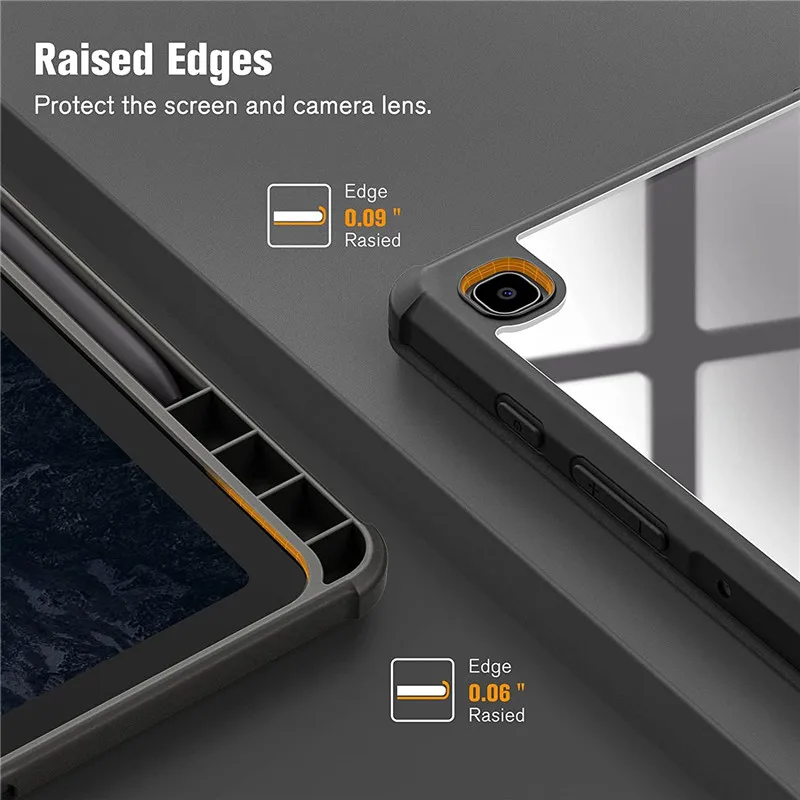 - 【Adjustable Stand Angles】Tri-fold front cover has flip capability to transform the Samsung Tab S6 Lite case into a viewing stand and keyboard stand
