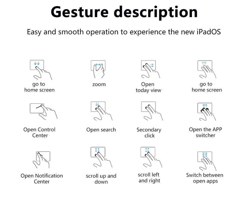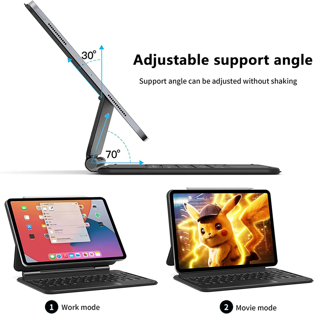 정확한 내장 터치 패드-멀티 터치 패드, 스크롤, 스 와이프 등을 사용하여 완전히 새로운 방식으로 iPad 프로 11 및 에어 5/4 탐색합니다. IPad Pro 11 인치 및 Air 10.9 인치 키보드를 입력 할 때 손바닥 제거 기능이 시작되어 입력 할 때 터치 패드를 비활성화합니다. 문서를 편집하고, 웹을 탐색하고, 탁월한 속도로 프리젠 테이션을 구축합니다.