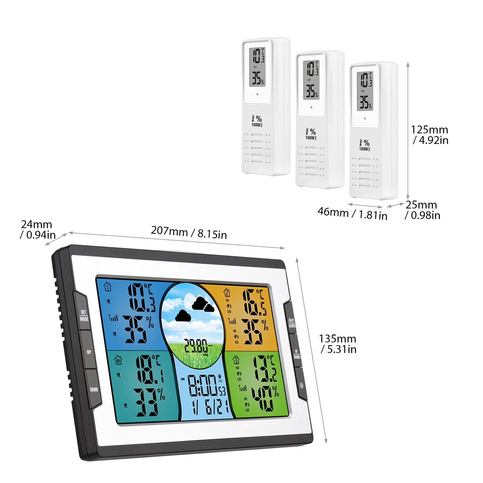 기상 관측소 크기: 167*128*30mm / 6.57*5.04 * 1.18in