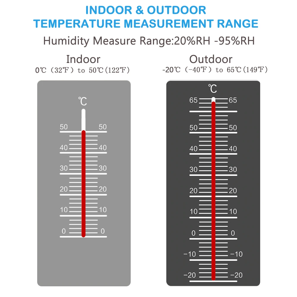 실내 및 실외 습도 측정 범위: 20% ~ 95% RH