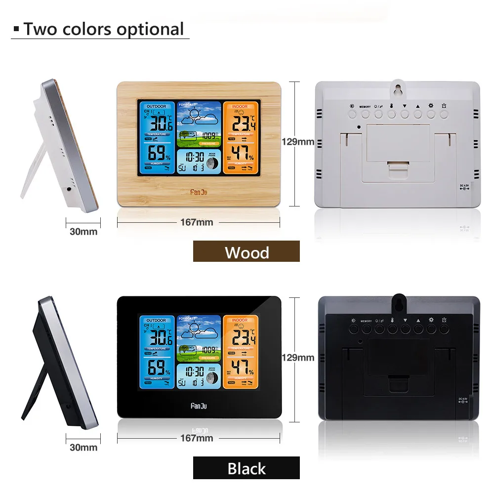 FJ3373 다기능 디지털 기상 관측소 알람 시계. 온도계, 습도계 및 기압계 기능이 있으며 무선 센서를 구성합니다. 이 데이터는 미래의 기상 조건을 예측하는 데 사용될 수 있습니다. 그것은 여러분에게 시간과 달력을 알려줄뿐만 아니라 여러분의 삶에 도움이 됩니다. 테이블 위에 있든 벽에 있든 다양한 위치에 적합합니다. 단순하고 현대적인 디자인은 훌륭한 도구와 가정 장식입니다.