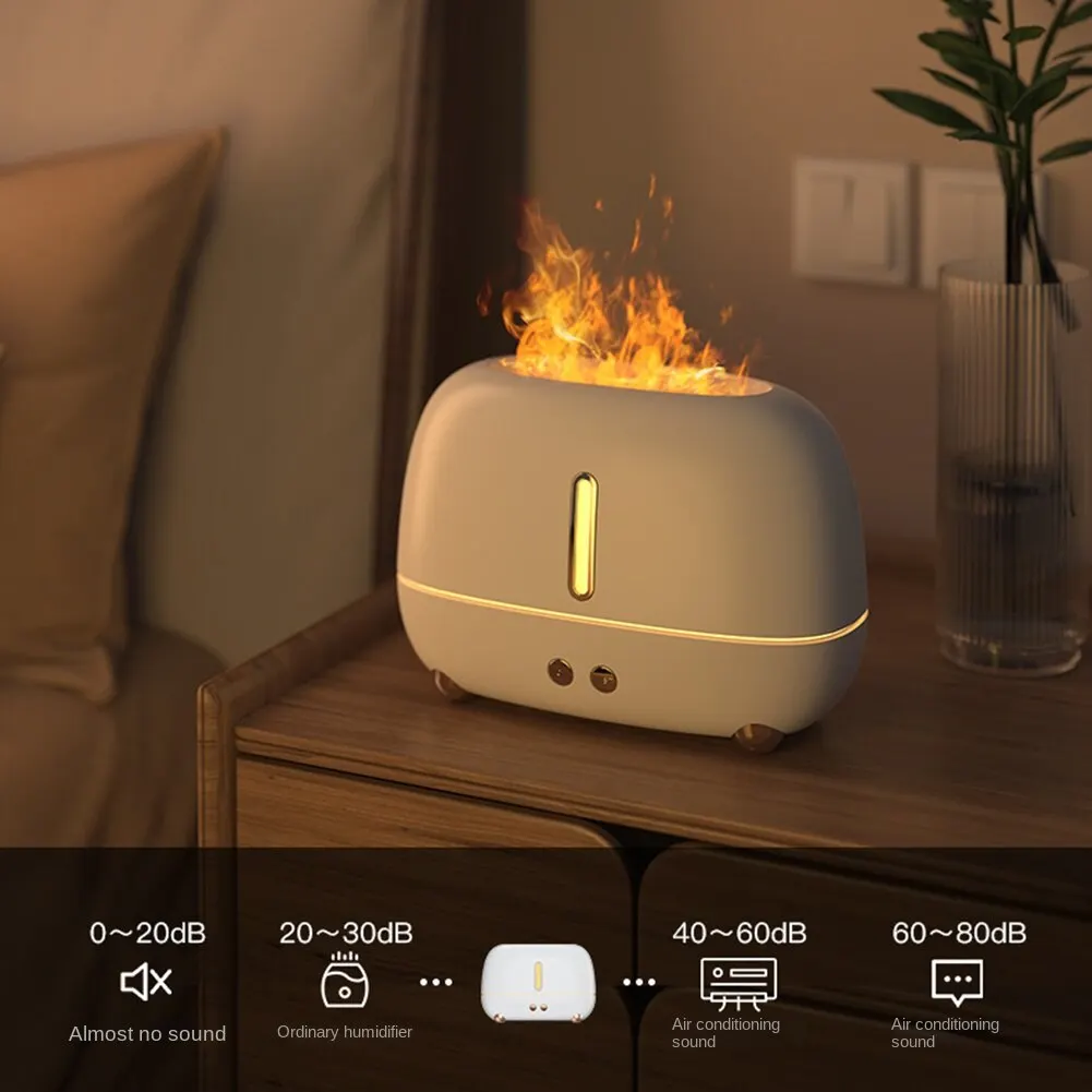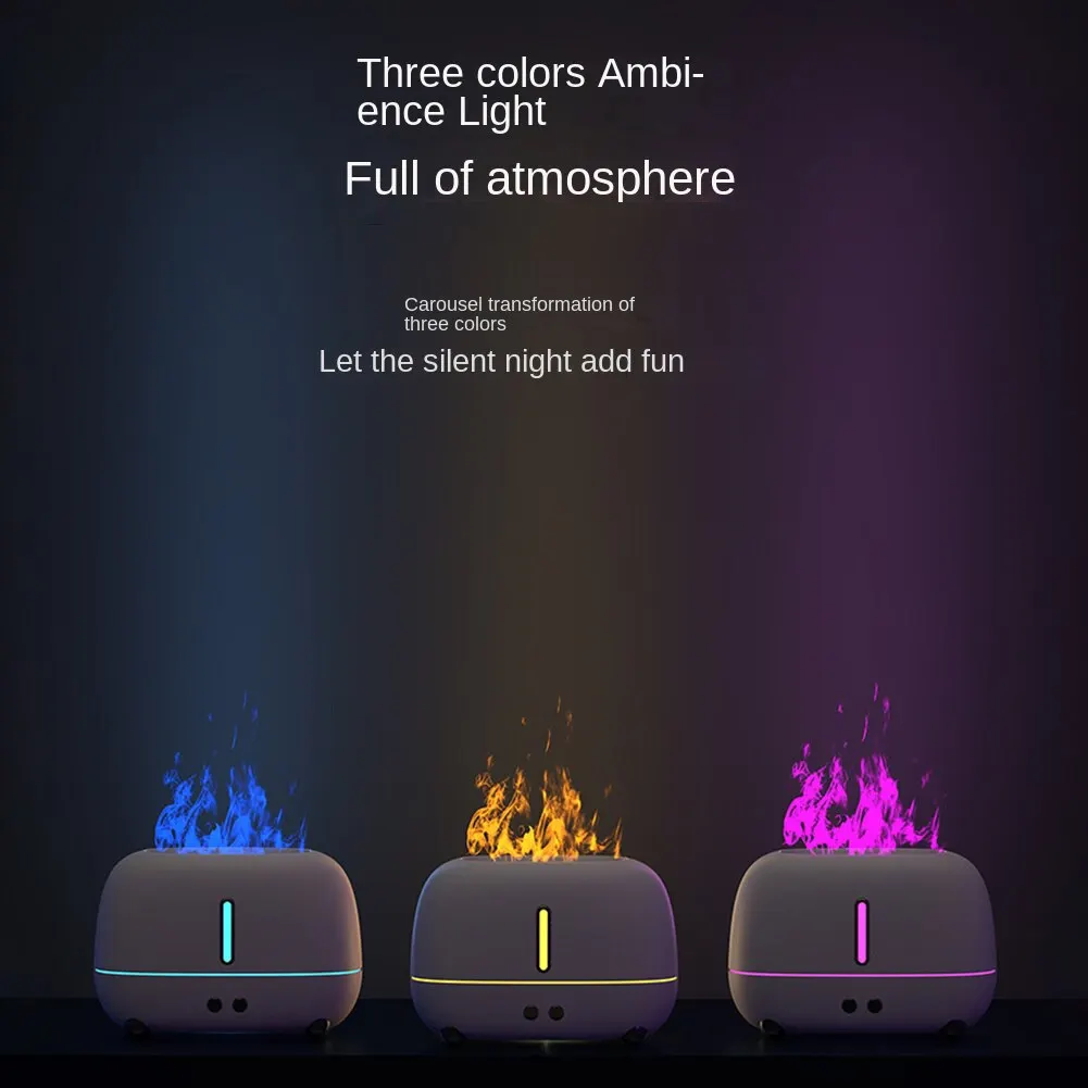 이 디퓨저 가습기는 유비쿼터스 불꽃 효과를 위해 파란색, 주황색 및 자주색의 세 가지 불꽃 색상으로 독특한 불꽃을 특징으로합니다. 또한 화염의 색상을 마음대로 조정할 수 있습니다. 또한 피로감을 효과적으로 완화하고 공기 질을 향상시키기 위해 2-6 방울의 에센셜 오일을 첨가 할 수 있습니다.
