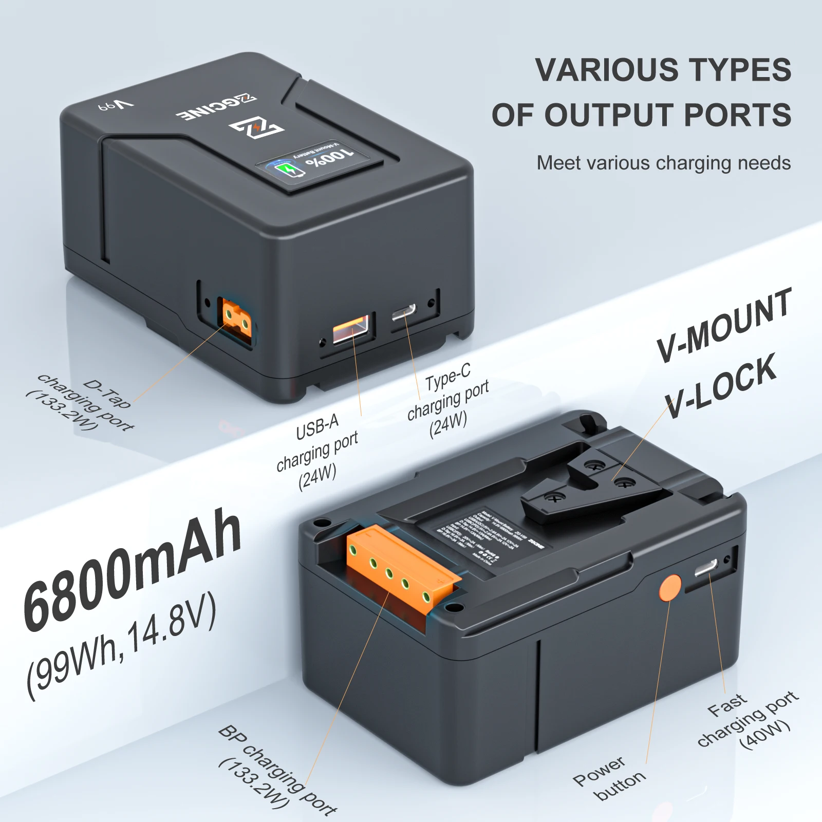 ZGCINE 99Wh 6800mAh V 마운트/V 잠금 배터리 14.4V 휴대용 충전식 배터리 LCD 화면 비디오 라이트 스마트 폰