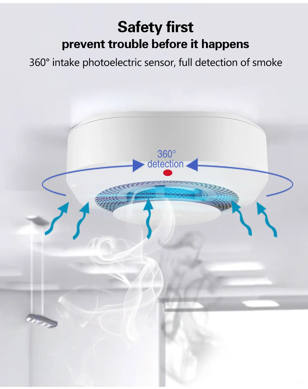 -이 연기 감지기는 저전압 및 오류 프롬프트 기능으로 설계되었으며 저전력 때 자체 테스트 기능으로 경고합니다.