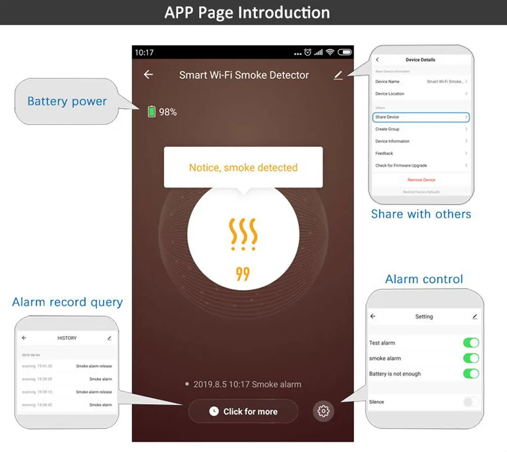 -화재가 발생하면 즉시 알림을 받아 화재 위험으로부터 탈출 할 수 있습니다.