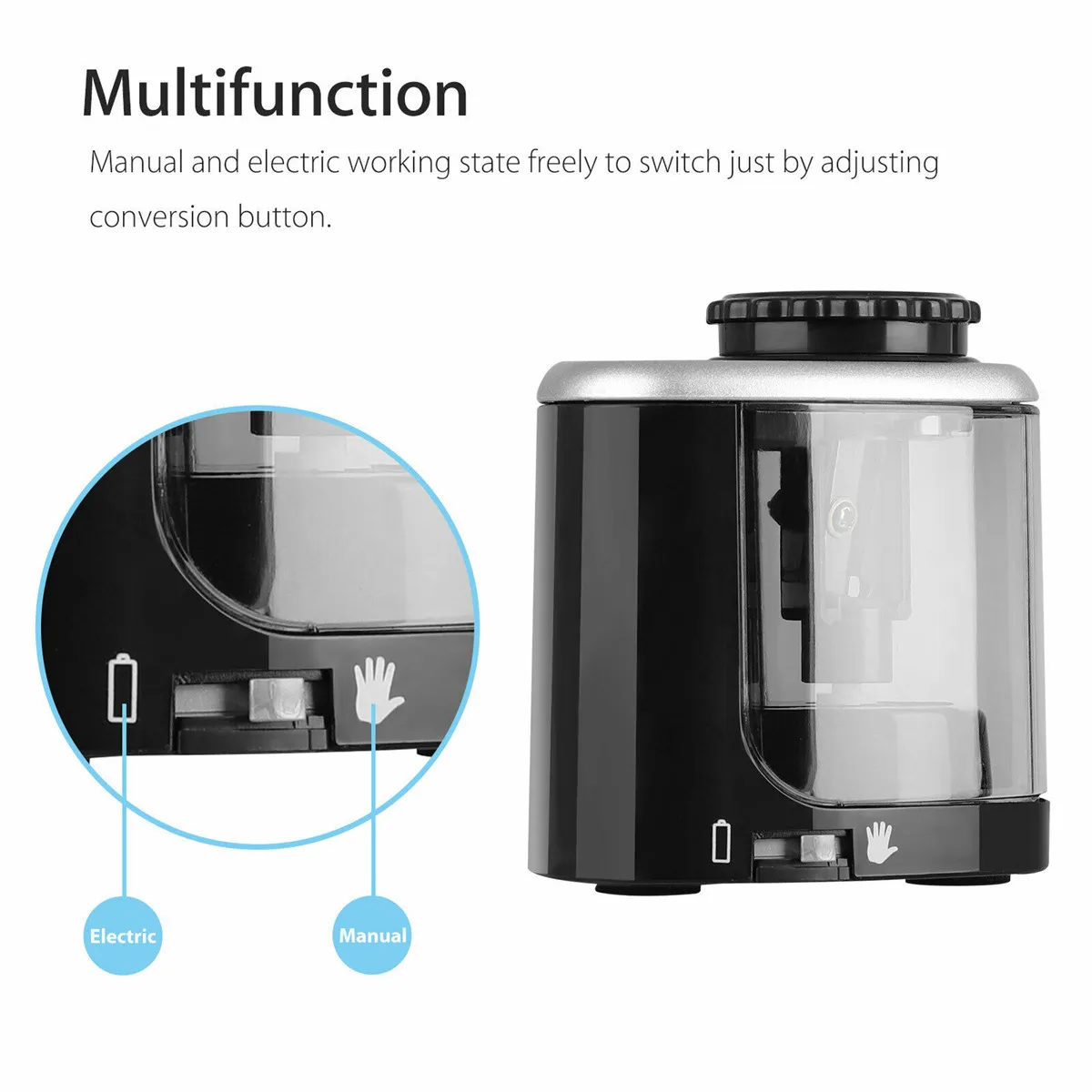 -다기능: 변환 버튼을 조정하여 수동 및 전기 작동 상태를 자유롭게 전환 할 수 있으며 배터리가 전원을 공급할 수없는 경우에도 샤프너가 계속 작동 할 수 있습니다.