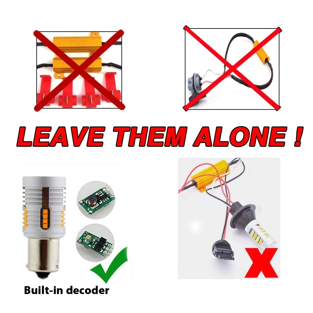 3. 거기 다양한 브랜드. 일부 차량에서는이 항목 4 개 (전면 신호 및 후면 신호등) 를 설치하면 하이퍼 플래시 문제없이 잘 작동합니다. 그러나 일부 차량 여전히 충족 하이퍼 플래시 문제 설치 후 4 사진에서이. 이것은 이러한 자동차의 컴퓨터 canbus 시스템이 동시에 4 위치에서 신호 전류를 수신하지 못하면 오류 발생하기 때문입니다.