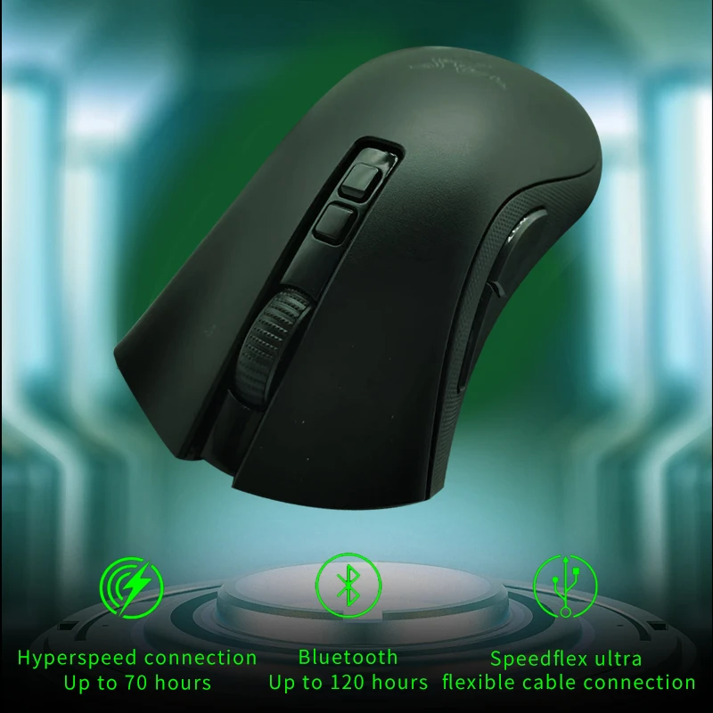 This wireless ergonomic gaming mouse offers 3 modes of connection to adapt to your needs: up to 120 hours via Bluetooth for maximum usage, up to 70 hours via RazerM HyperSpeed Wireless for low-latency gaming, or plugged in via its RazerM Speedflex cable so you can continue to game even as it’s charging.