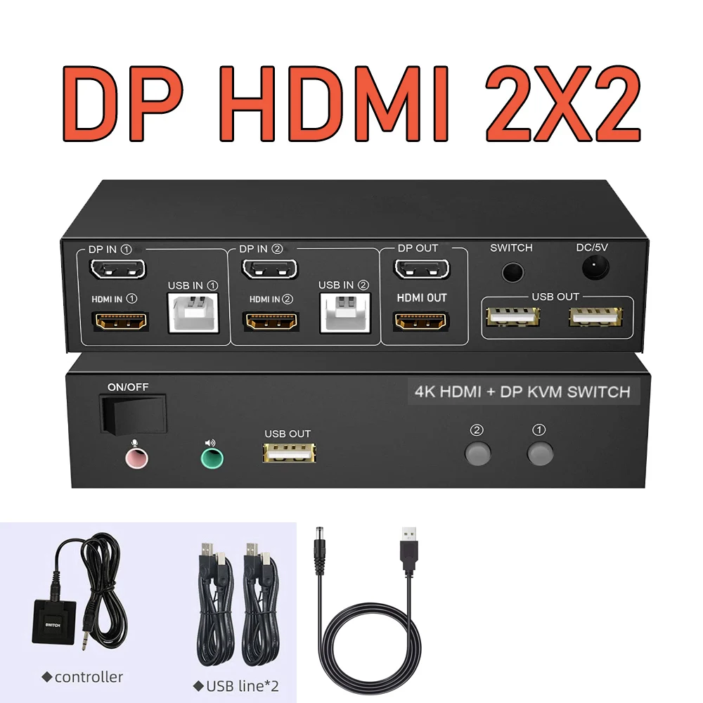 3) 이것은 KVM 듀얼 모니터 스위치이며 4X2 HDMI KVM 매트릭스가 아닙니다.