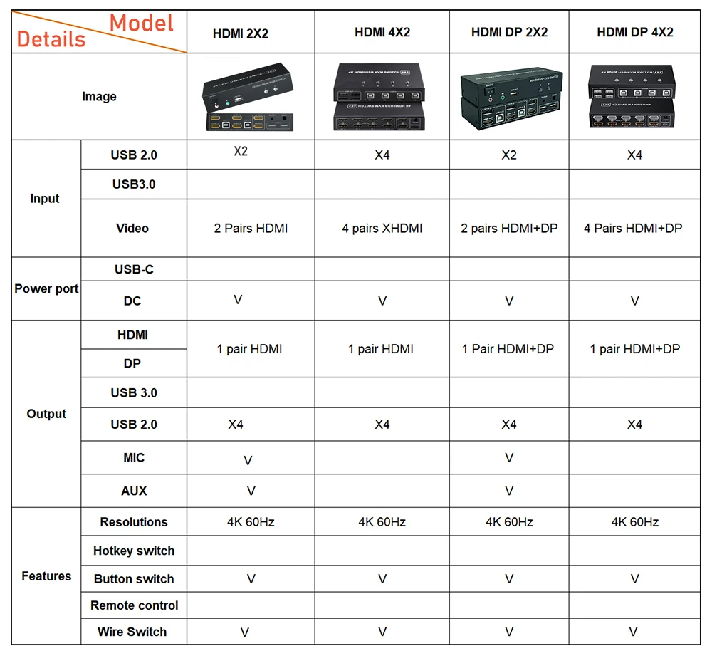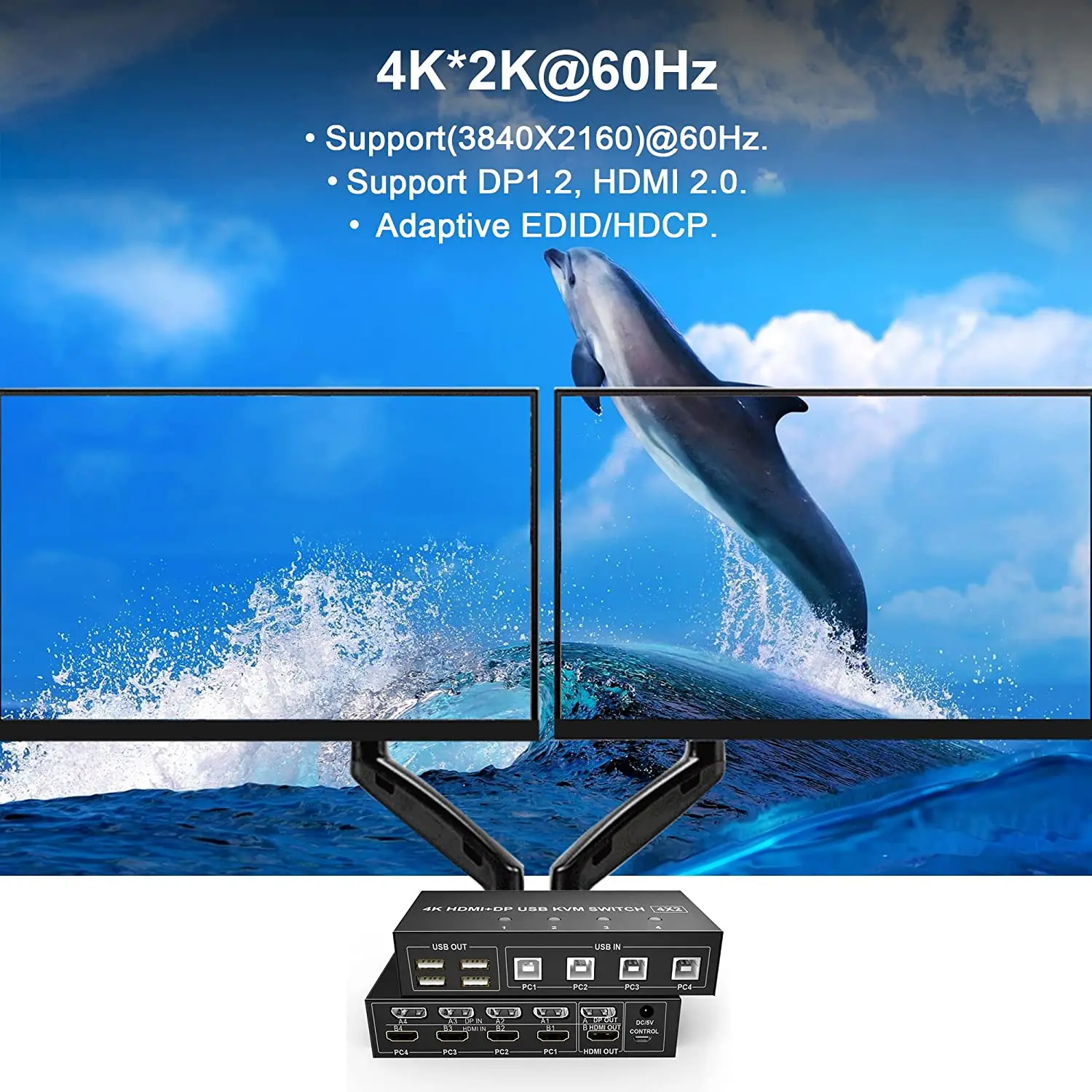 듀얼 모니터 KVM 스위치 HDMI 4 포트는 최대 3840X2160P @ 60Hz 까지 입 및 출력 해상도를 지원합니다.